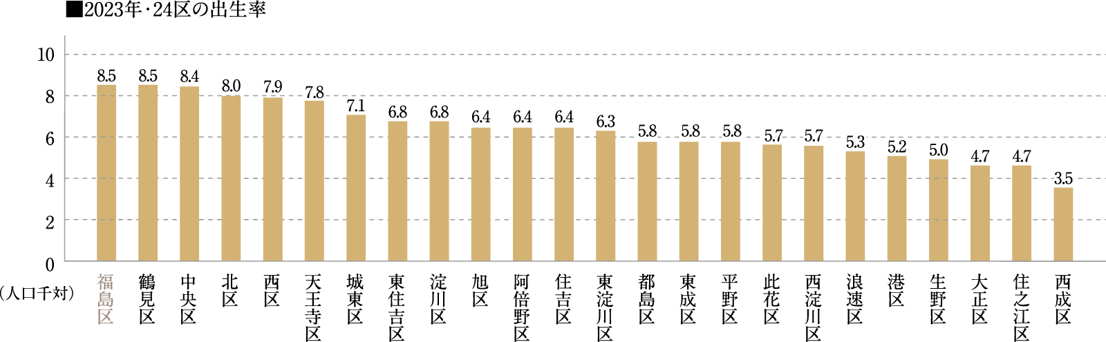大阪都心24区のうち、福島区は「出生率」でNo.2。